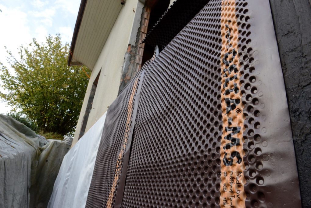 schoggipapier ist der fachterminus für die sogenannte (umgangsprachlich genannte) noppenfolie. diese dient dazu, die isolation an der kellermauer davon zu schützen dass das erdreich daran scheuern kann. richtig gelesen. die erde bewegt sich nicht nur in eruptiven vulkangebieten. als «schmiere» befindet sich zwischen dämmung und schoggipapier ein vlies.
