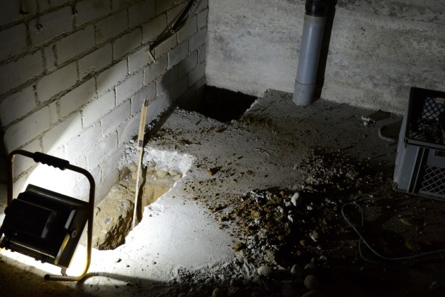 … auf der suche nach dem streifenfundament. gefunden in 50cm tiefe…. weil strom, wasser und abwasser neu verlegt werden muss reissen wir den ganze kellerboden…