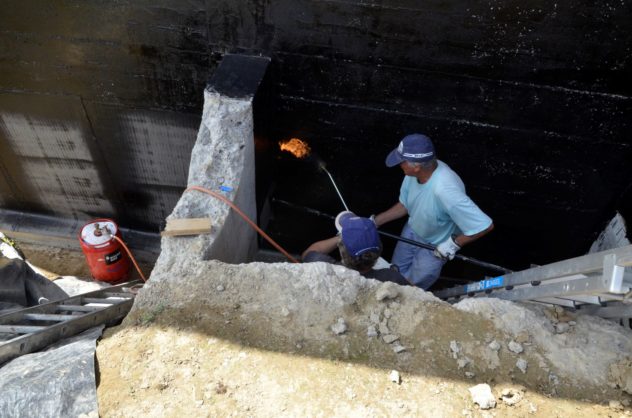 die kellerwände werden mit bitumenbahnen bellegt. dazu wird dieser mit einer flamme erhitzt und auf die wand aufgezogen. ähnlich einer tapete. die bitumenbahnen enthalten eine…