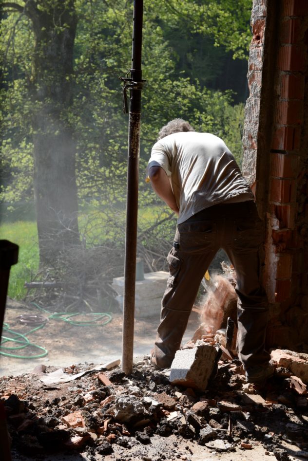 die einschnitte der kellerfenster (die wir vergrössern) können wie ein schoggitäfeli herausgebrochen werden. jedes der beiden teile wiegt so um die 600kg. wie gut das…